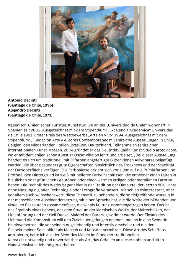 Wie im Programm angekündigt, geben wir einen kleinen Überblick über eine ganz besondere Ausstellung traditioneller Ölgemälde von Antonio und Alejandro Decinti: